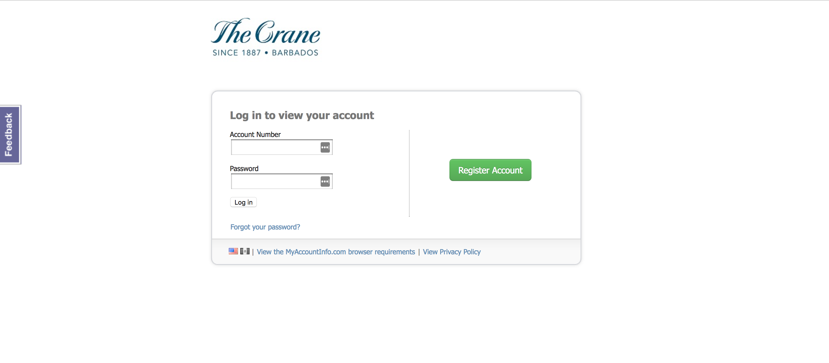 - Click on the “Register Account” button (to register your account or to reset your password)